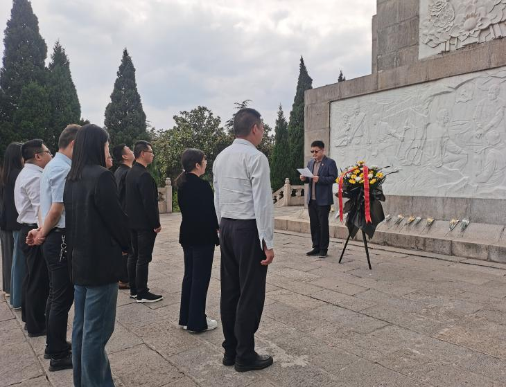 在烈士陵園,劉書(shū)記代表公司向革命烈士敬獻(xiàn)了花籃,全體員工在烈士紀(jì)念碑前整齊列隊(duì),向先烈們默哀致敬。我們獻(xiàn)上鮮花,表達(dá)對(duì)烈士們的無(wú)限懷念和深深敬意。這一刻,我們仿佛能夠聽(tīng)到先烈們的英勇呼喚,感受到他們堅(jiān)定的信仰和不屈的精神。