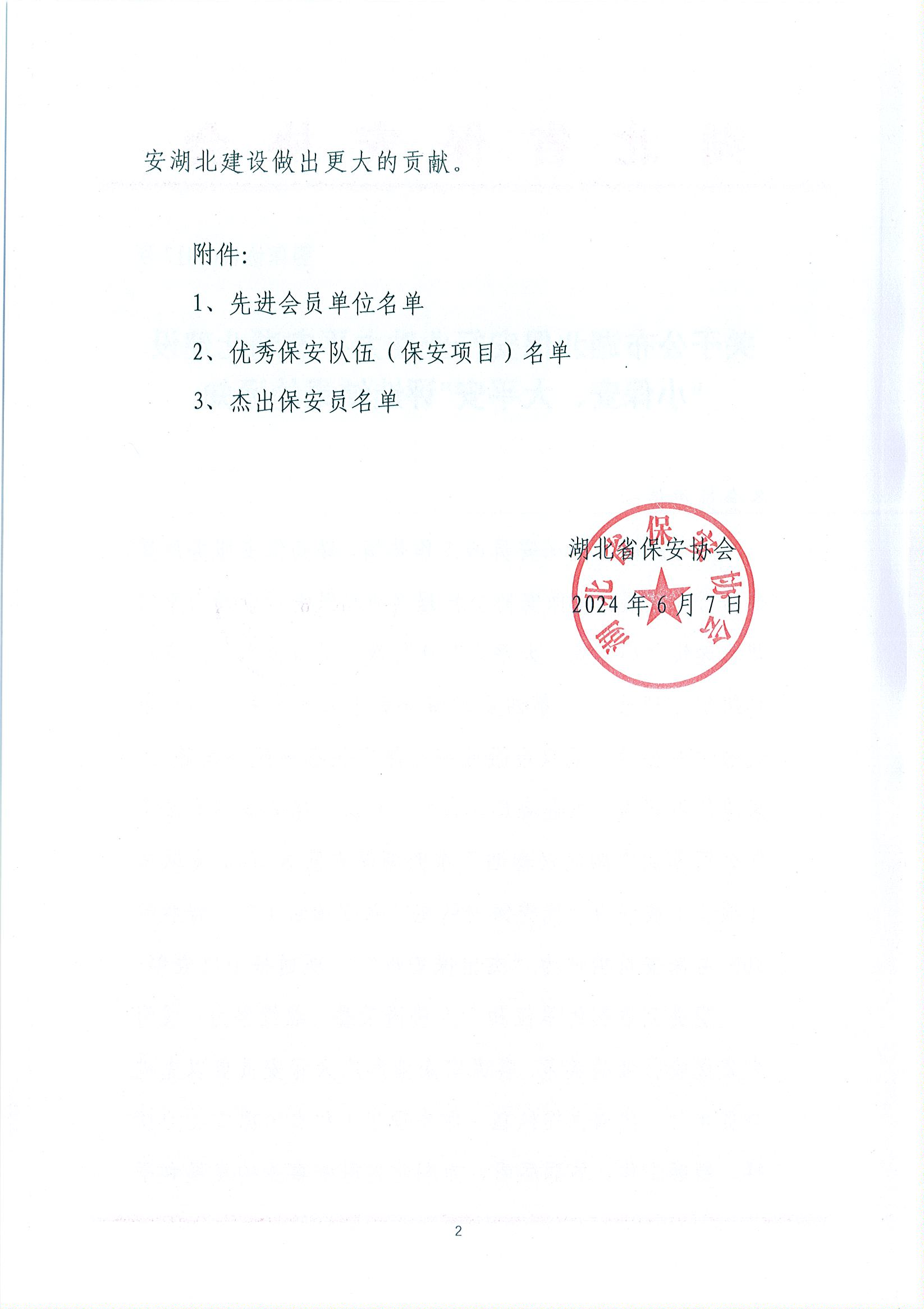 在平安湖北建設(shè)“小保安、大平安”評選活動中,我公司榮獲“先進會員單位”殊榮,荊門龍山世茂保安隊榮獲“優(yōu)秀保安隊伍”稱號,李容同志榮獲“杰出保安員”榮譽。以上成績均獲得湖北省保安協(xié)會的通報表彰,特此喜報!