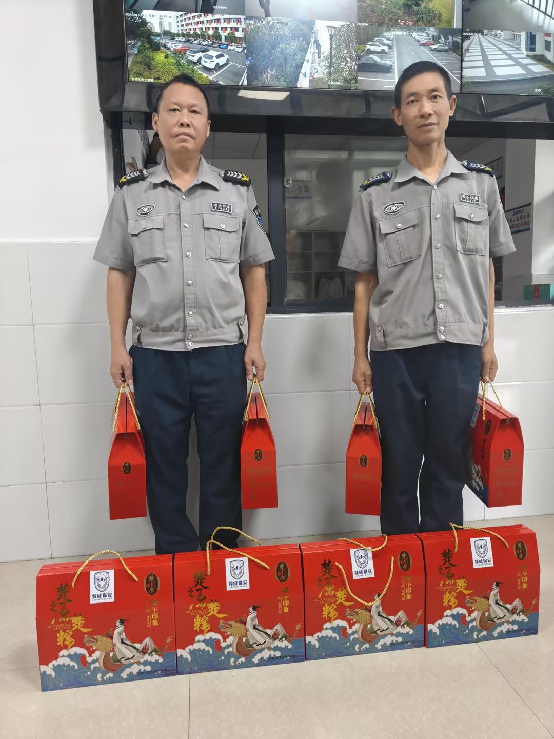 為表達(dá)公司對(duì)一線保安員的關(guān)愛與敬意,公司精心為全體員工準(zhǔn)備了端午禮品,由各片區(qū)運(yùn)營(yíng)負(fù)責(zé)人代表公司黨支部與工會(huì),深入基層駐點(diǎn)項(xiàng)目,開展端午慰問(wèn)活動(dòng)。他們與一線保安員親切交流,詳細(xì)了解他們的工作情況和生活狀況,并送上節(jié)日的祝福與問(wèn)候。一句句“端午節(jié)安康,你們辛苦了!”溫暖了保安員們的心田,使他們深切感受到了公司的關(guān)懷與溫暖。