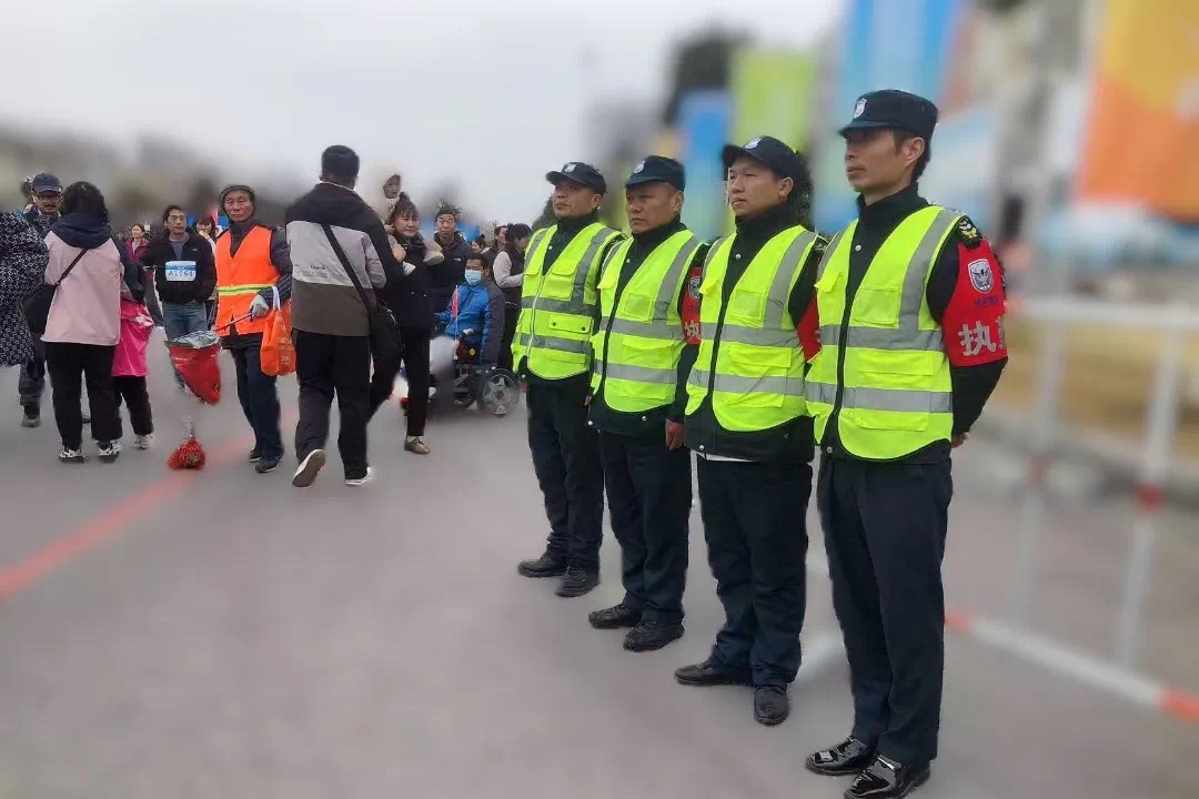 活動當(dāng)日,天還未亮,領(lǐng)威保安團(tuán)隊便已全員到崗,各就各位??偨?jīng)理劉道軍親臨現(xiàn)場,深入各個崗位檢查準(zhǔn)備工作。從活動起點的人員疏導(dǎo),到沿途關(guān)鍵路段的秩序維護(hù),再到終點的人流管控,每一處都有保安人員挺拔的身影。他們眼神專注,時刻保持高度警惕。活動過程中,他們不僅要維持現(xiàn)場秩序,引導(dǎo)參賽選手有序進(jìn)行,還要及時處理各種突發(fā)情況。盡管活動當(dāng)天寒風(fēng)凜冽,但是保安員們絲毫沒有懈怠,始終堅守在崗位上。